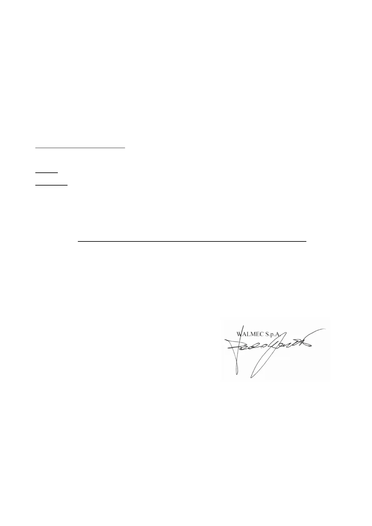 Assistance: WALMEC S.p.A. - Via Trieste, 10 - 31025 S. LUCIA DI PIAVE (Treviso) - Italy