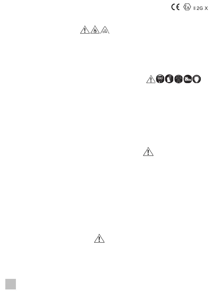 - Während des Gebrauchs und der Reinigung der Spritzpistole geeignete und antistatische Arbeitsschutzkleidung für