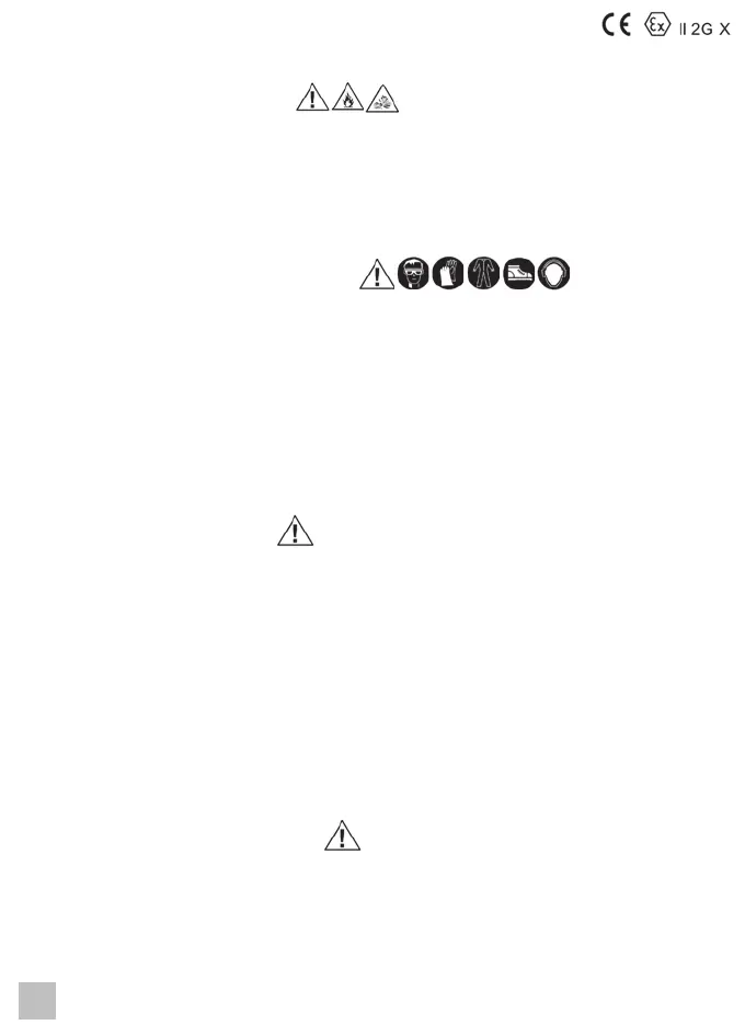 - L’aérographe est conçu pour être utilisé dans une atmosphère explosive classée comme zone 1 et 2 (Dir. ATEX).