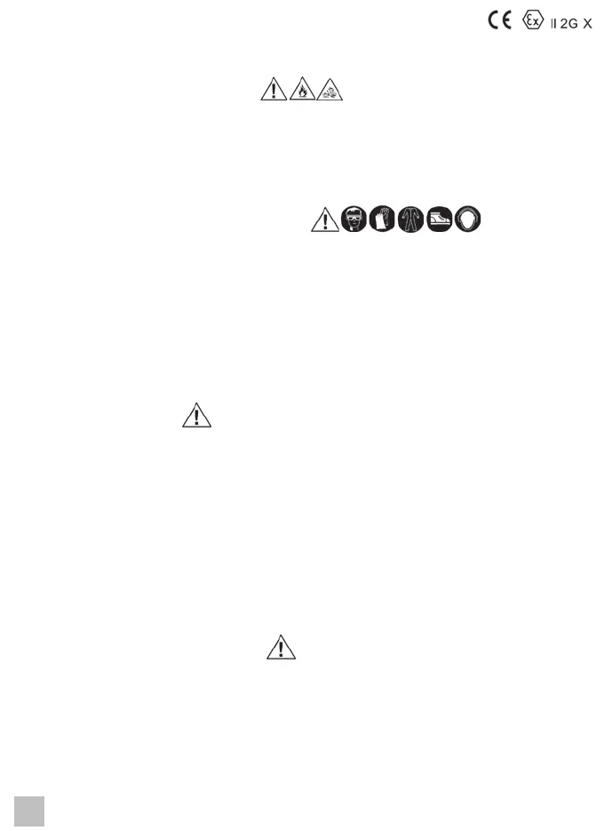- L’aerografo è costruito per essere utilizzato in atmosfere esplosive classificate come zona 1 e 2 (Dir. ATEX).