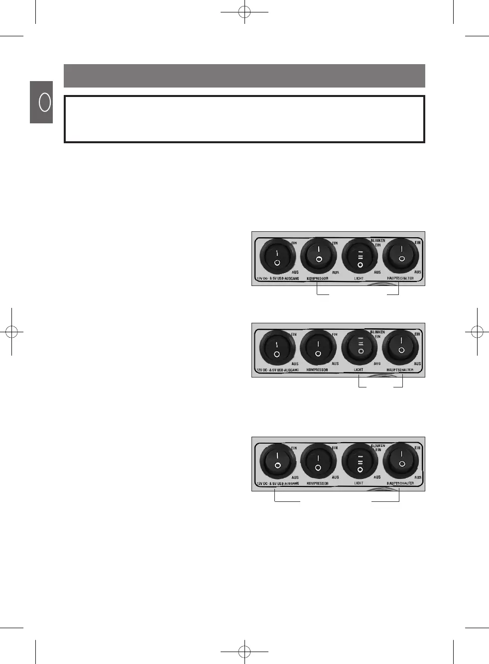 SWITCHING COMPRESSOR, LIGHTS AND SOCKETS ON OR OFF