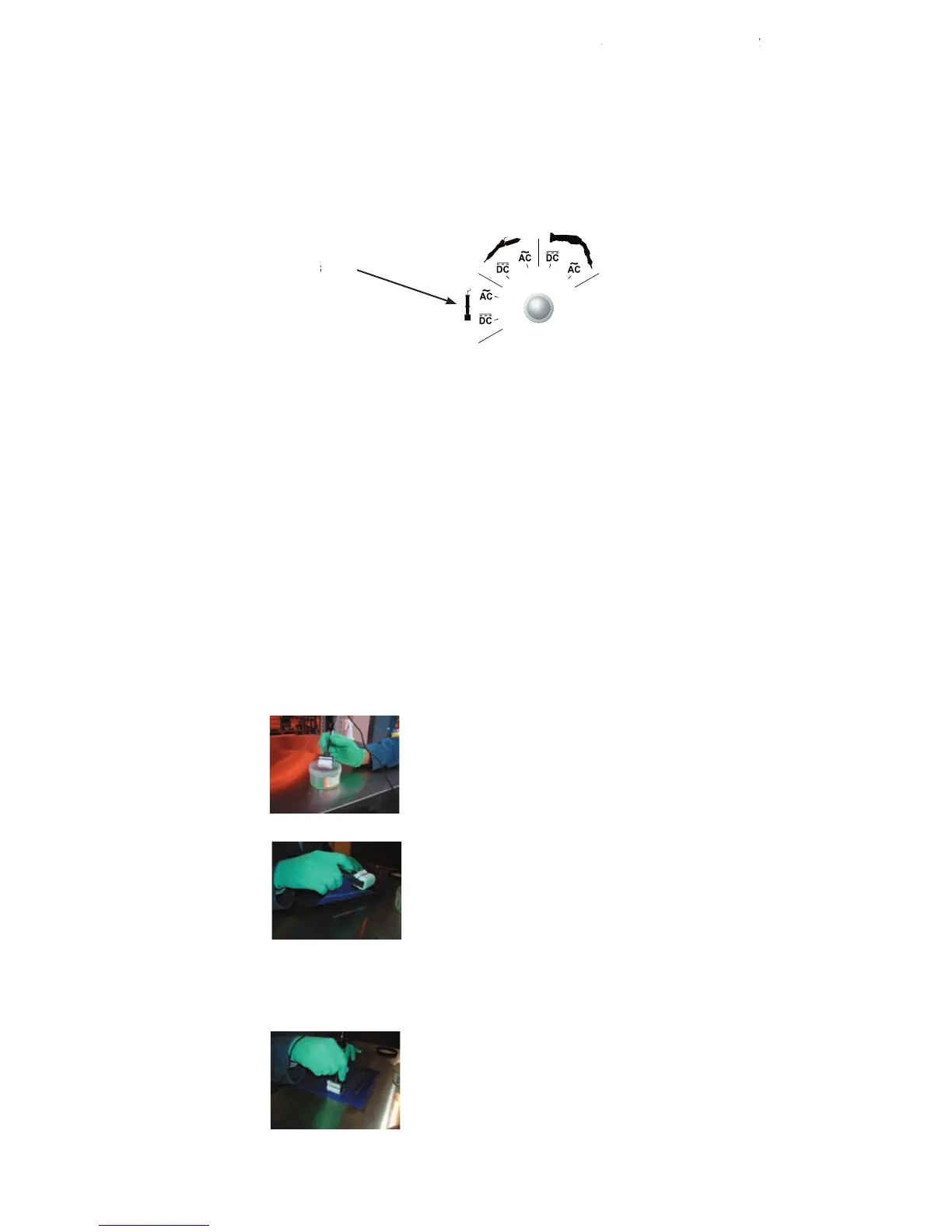 B) SELECTING THE VOLTAGE TYPE, AC or