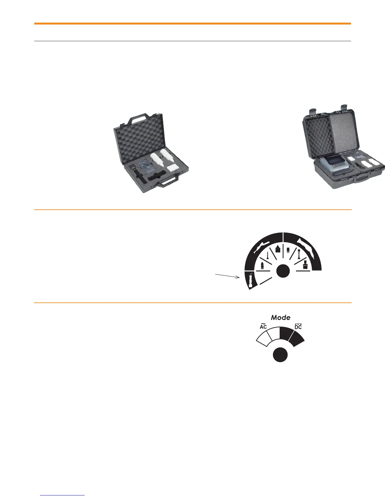 C) Selección de tipo de corriente apropiada, AC o DC y