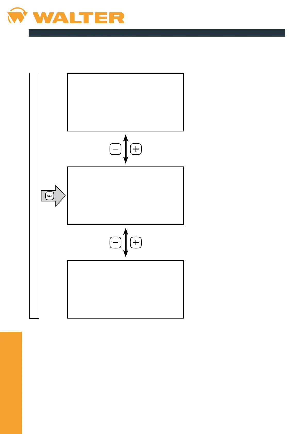 To change the power output of the device, press the SET button once and access the conguration screens (see diagram