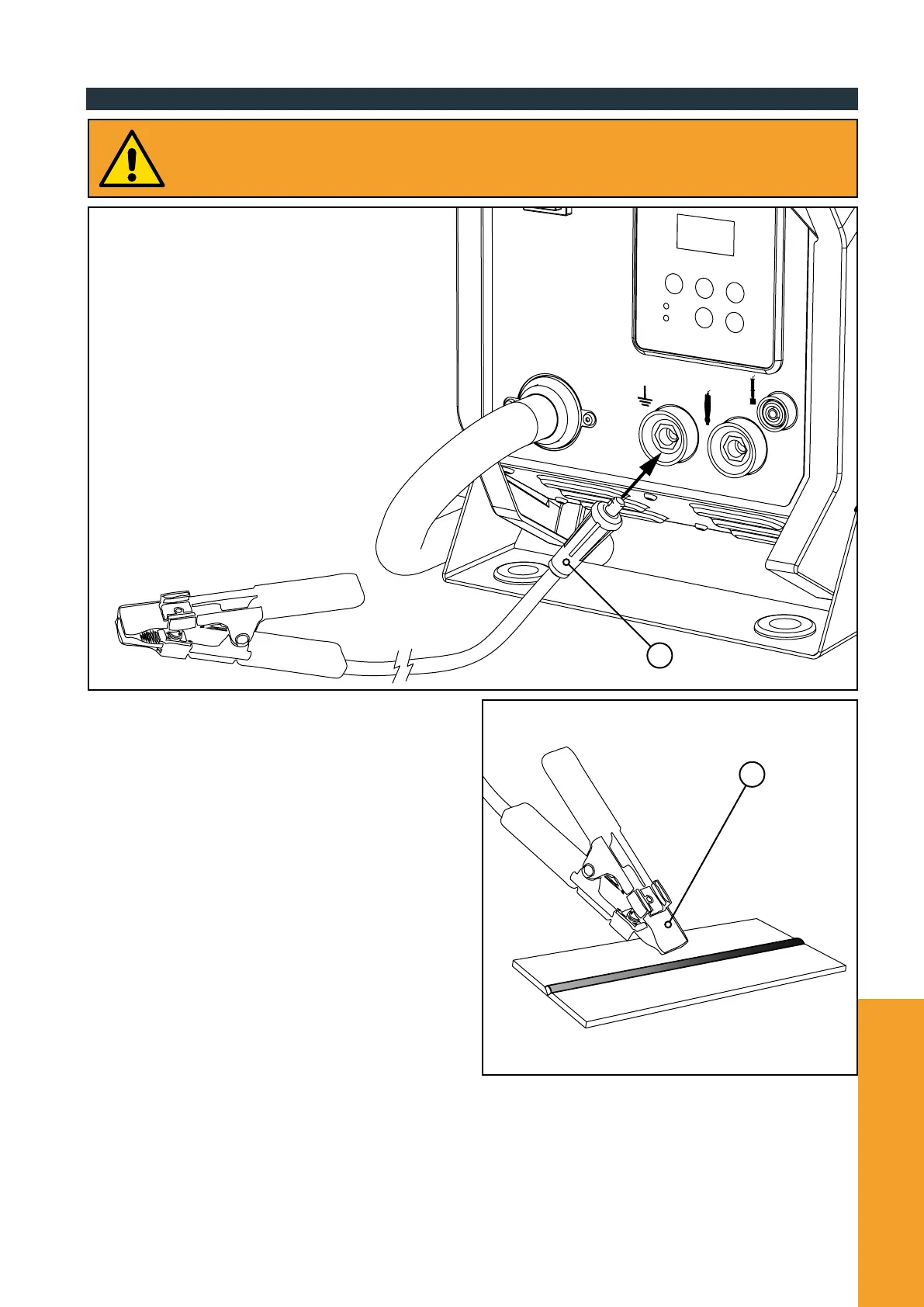 • Use the crocodile terminal of the ground cable (B) to grip