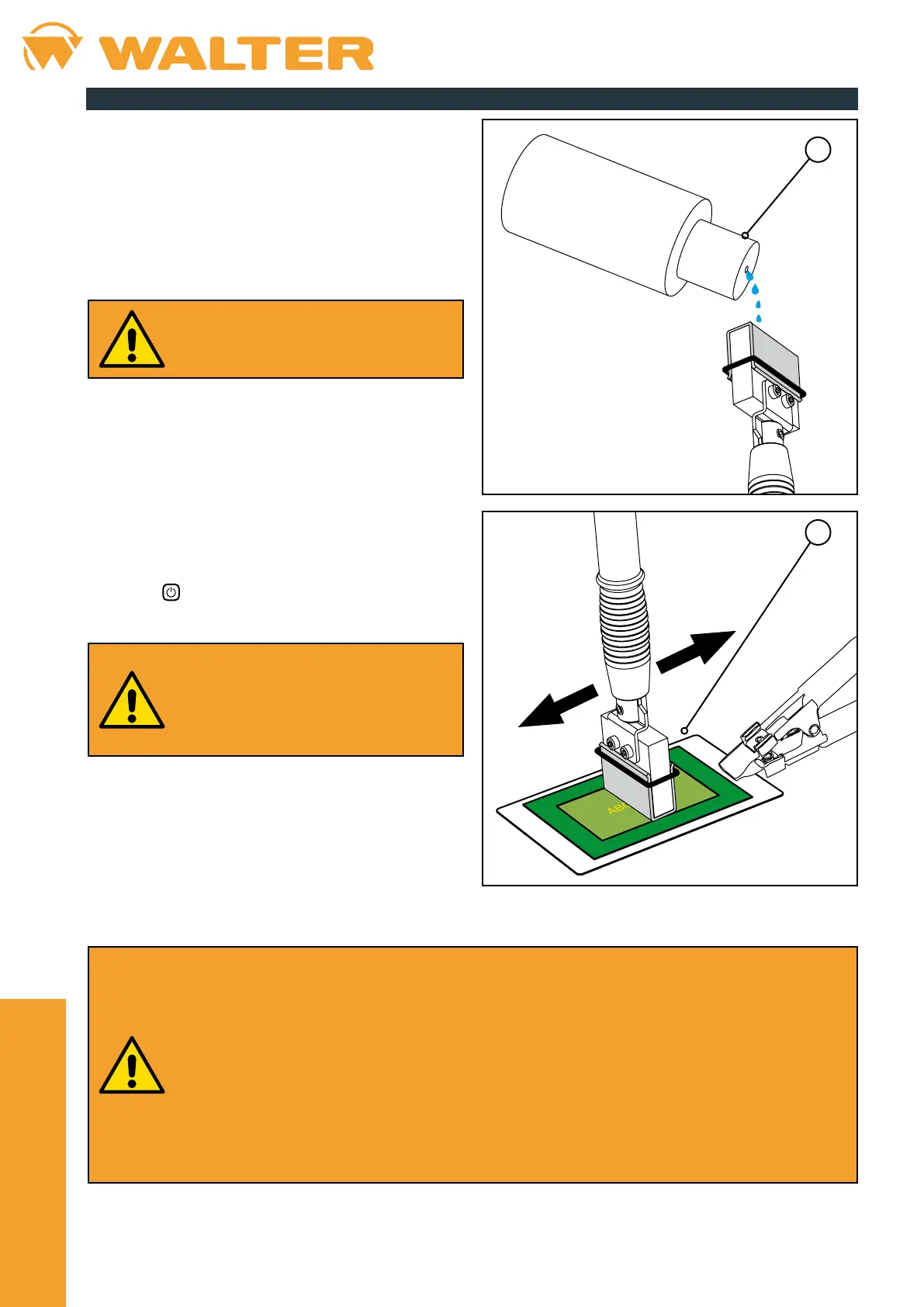 • Always keep the pad well moistened with the electrolytic solution to avoid overheating and consequent