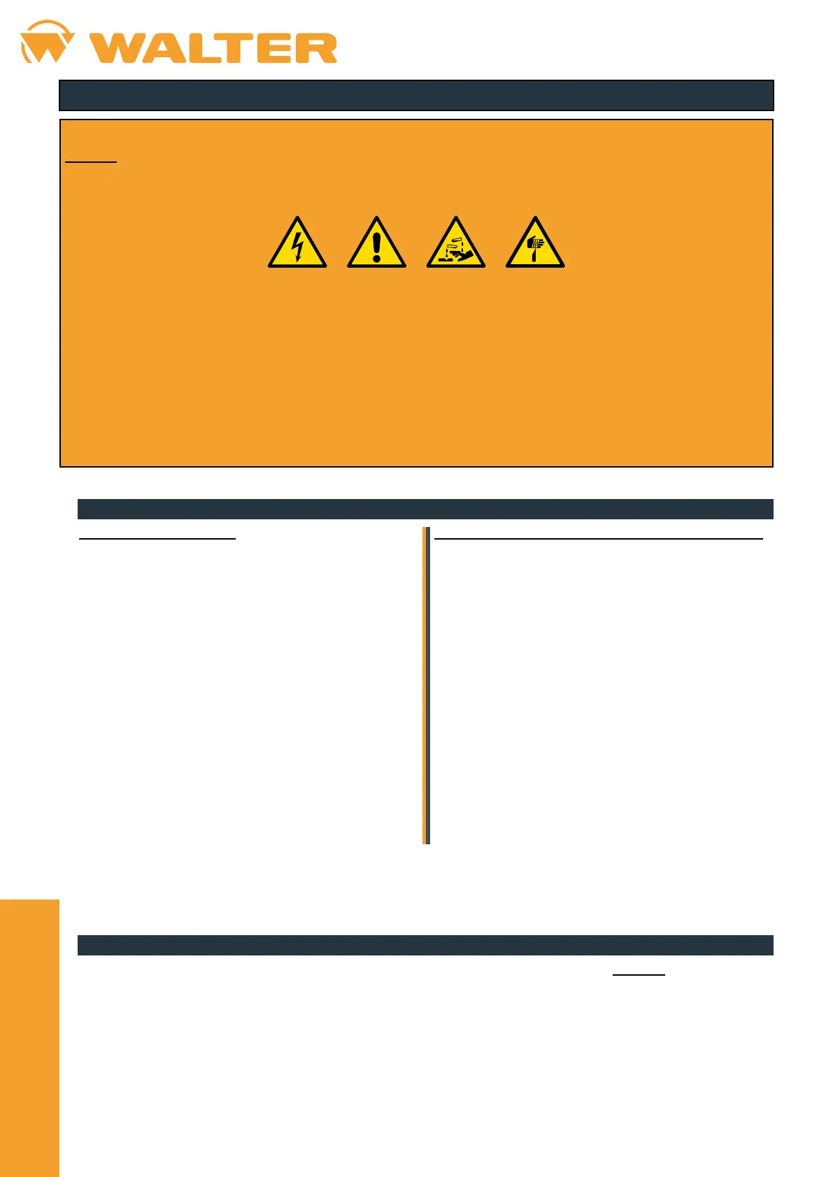 Extraordinary maintenance operations are usually carried out by specialized technicians of the WALTER company or by its