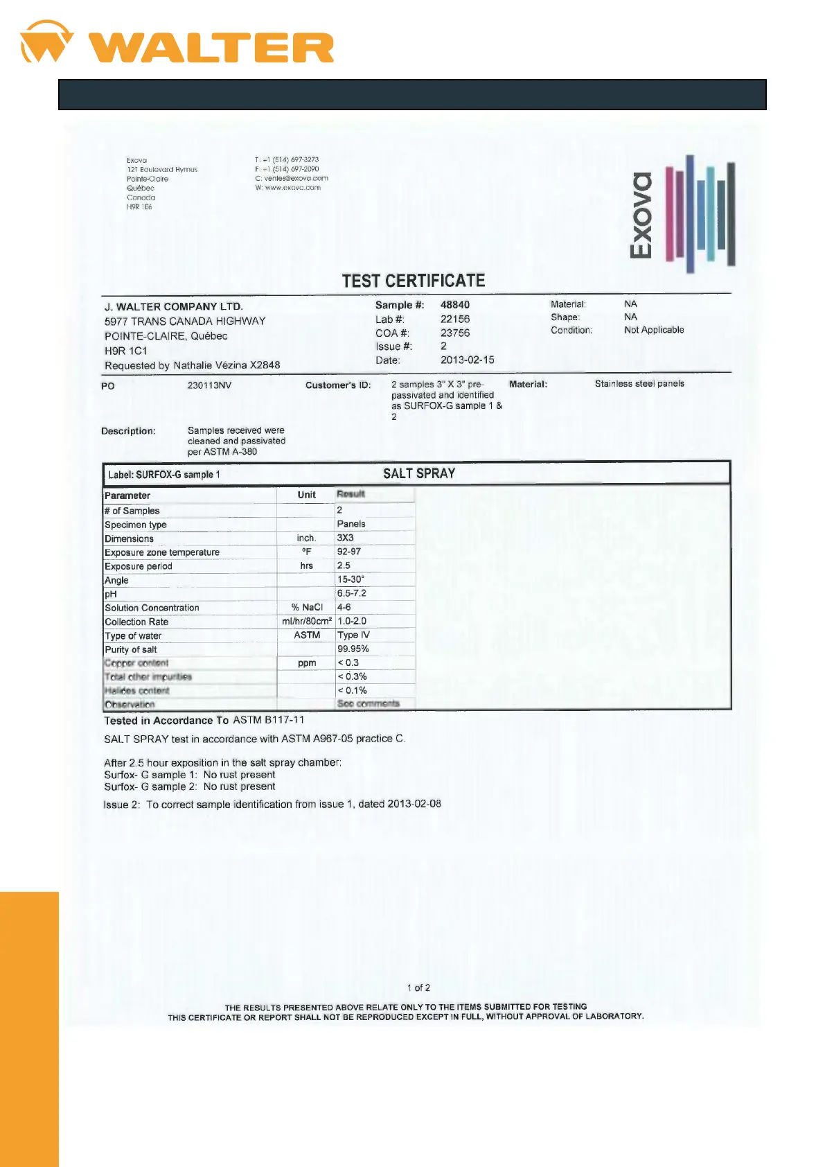 Walter SURFOX 306 - Declaration of Conformity