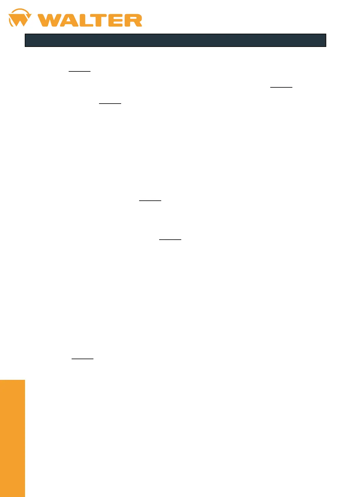 • Work covered by the warranty will be carried out at the WALTER Factory or Authorized Service Center on the following terms: