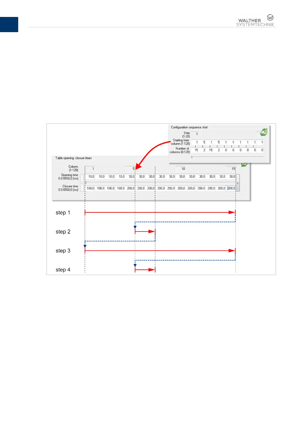 Figure 14 – Sample configuration of a sequence shot with four steps and the resulting series of opening and