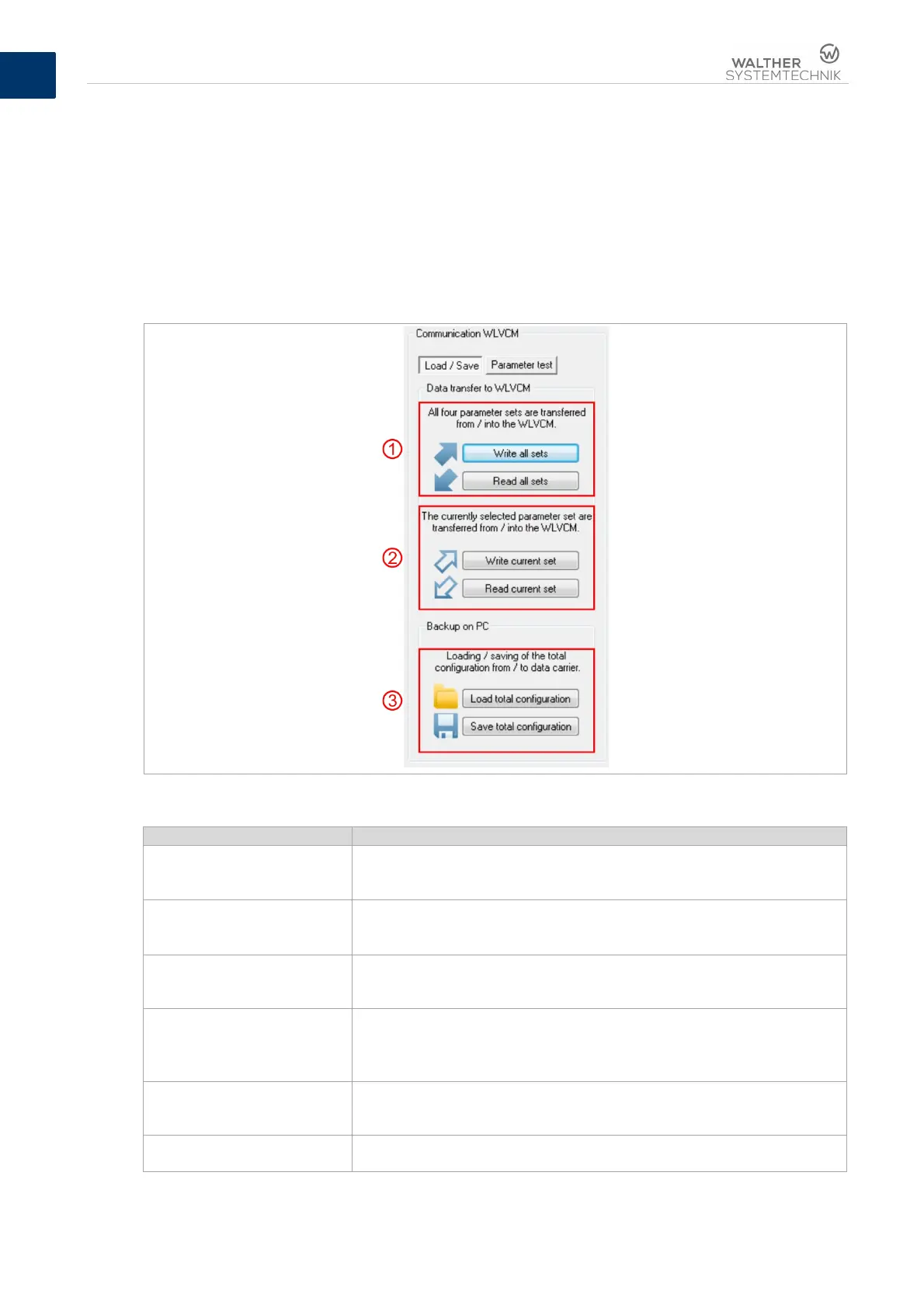 The area “Communication WLVCM“ (see also figure 6) offers you two different function ranges. On the
