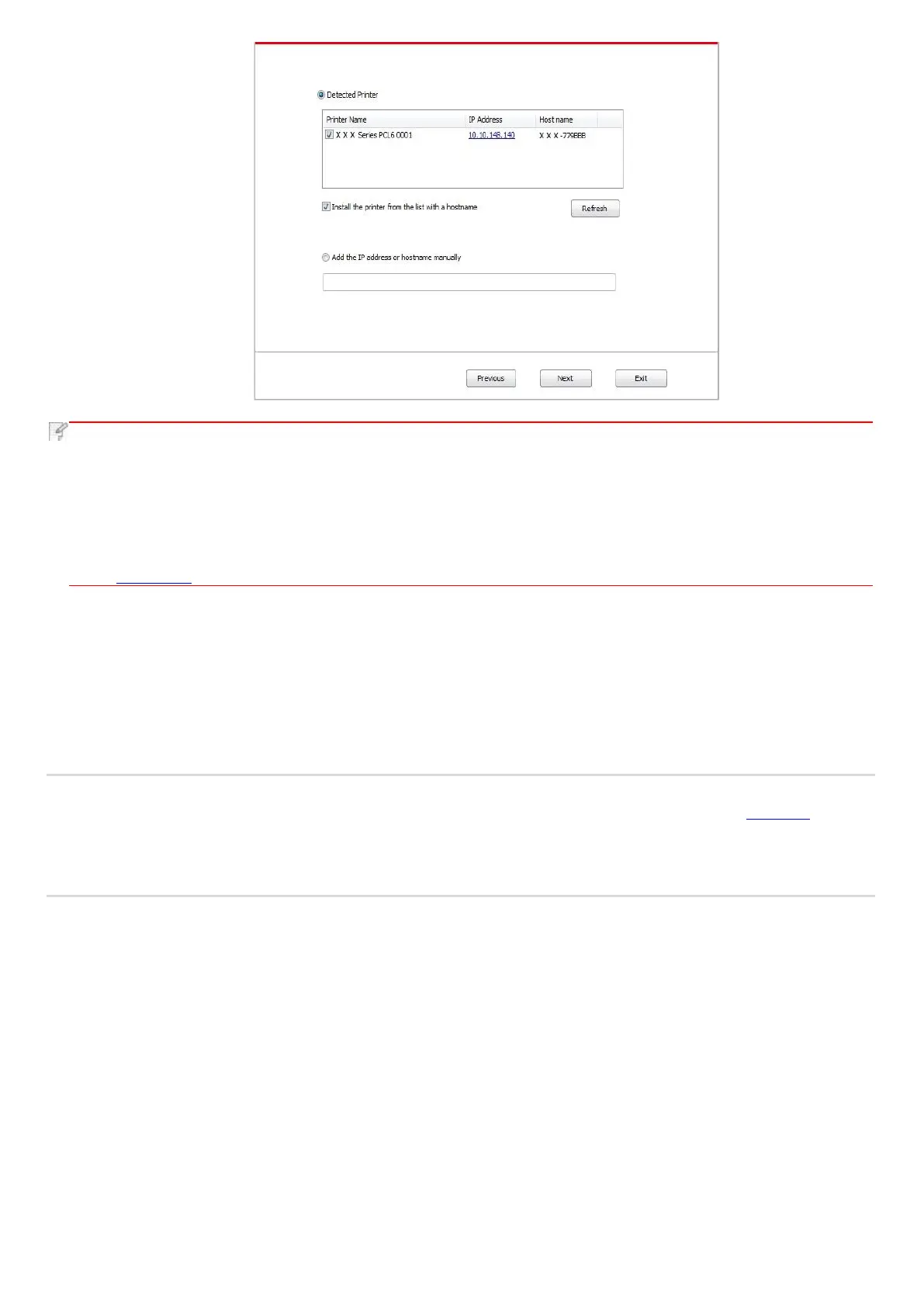 • If IP address or host name is added manually, you need to know the IP address of the printer connected or host