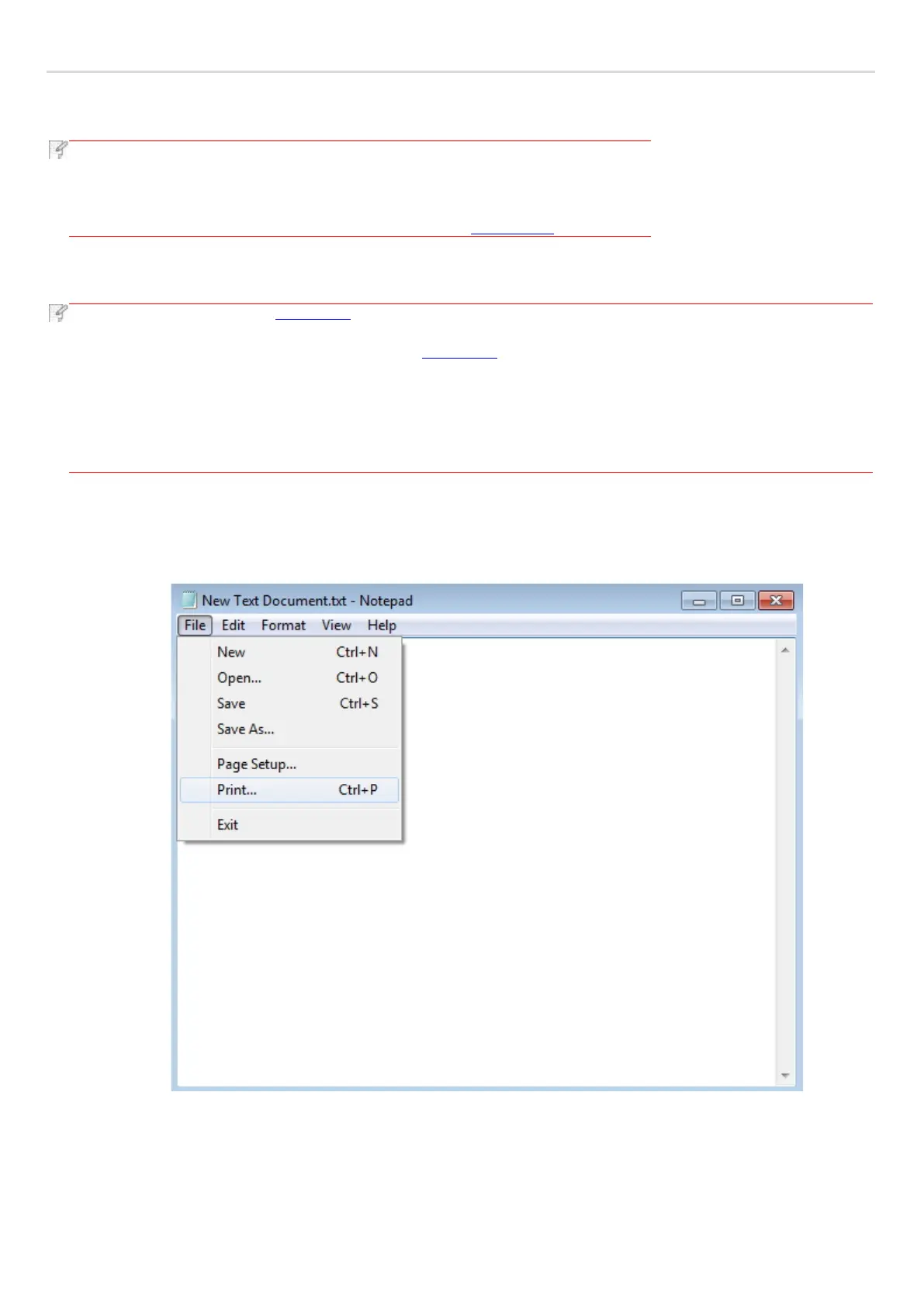 a) Open the document to be printed from the application (such as Notepad), and select "Print" from the "File" menu.