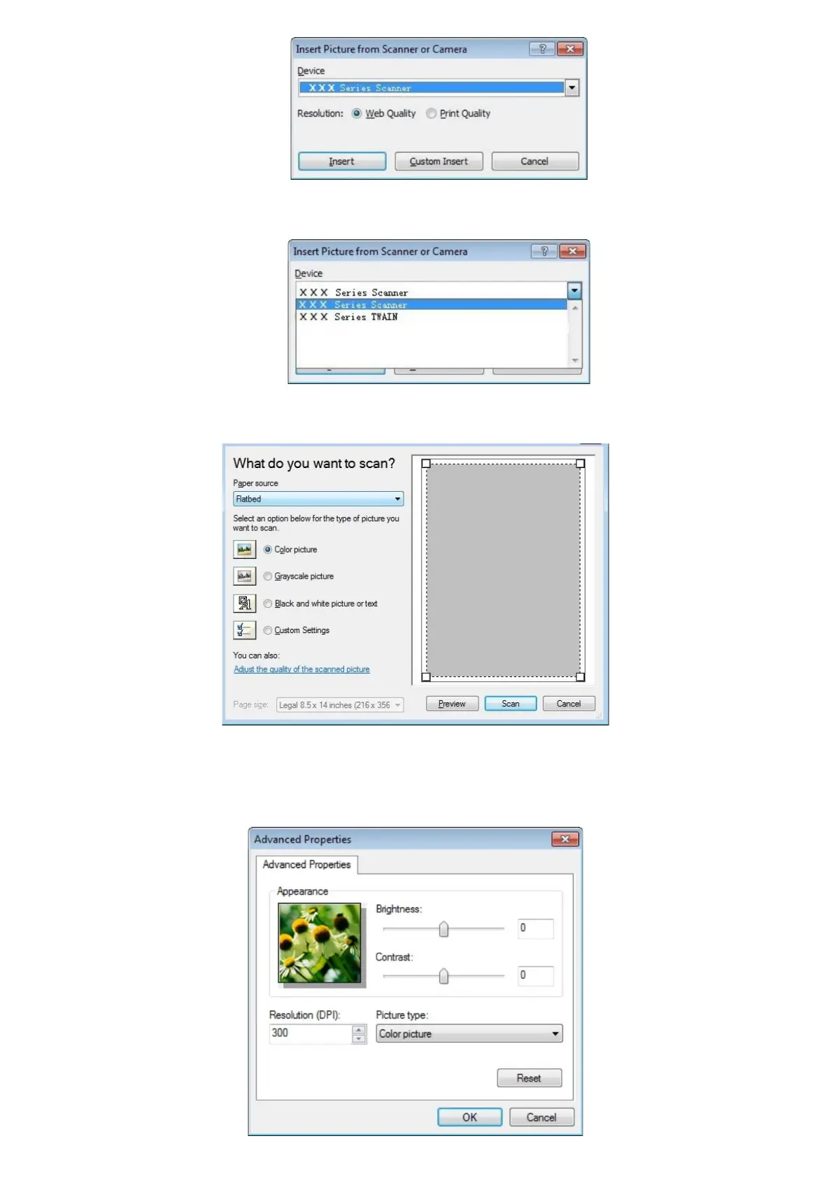 4) Click on "Adjust the Scanned Image Quality" on the bottom left corner of the above picture, the advanced properties