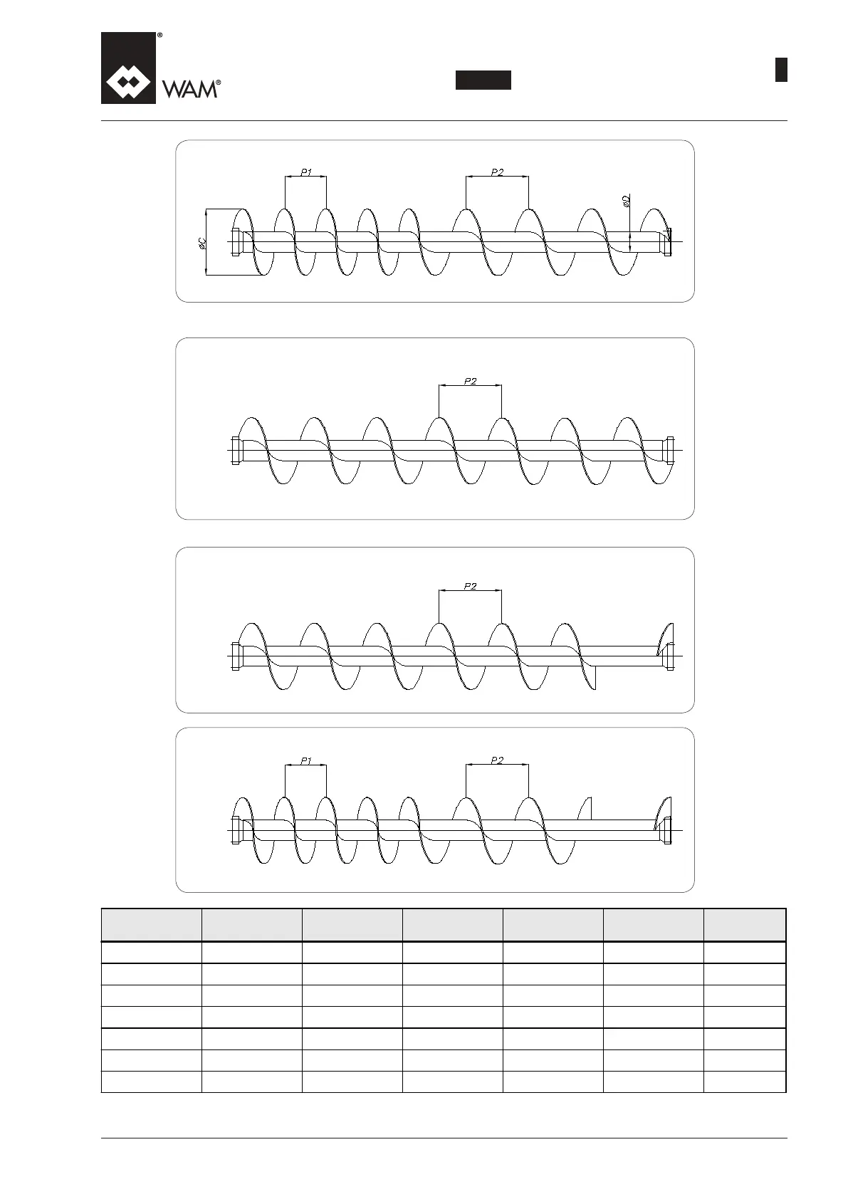 * With pitch P2 without shaft couplings - Mit Steigung P2 ohne Wellenverbindungen