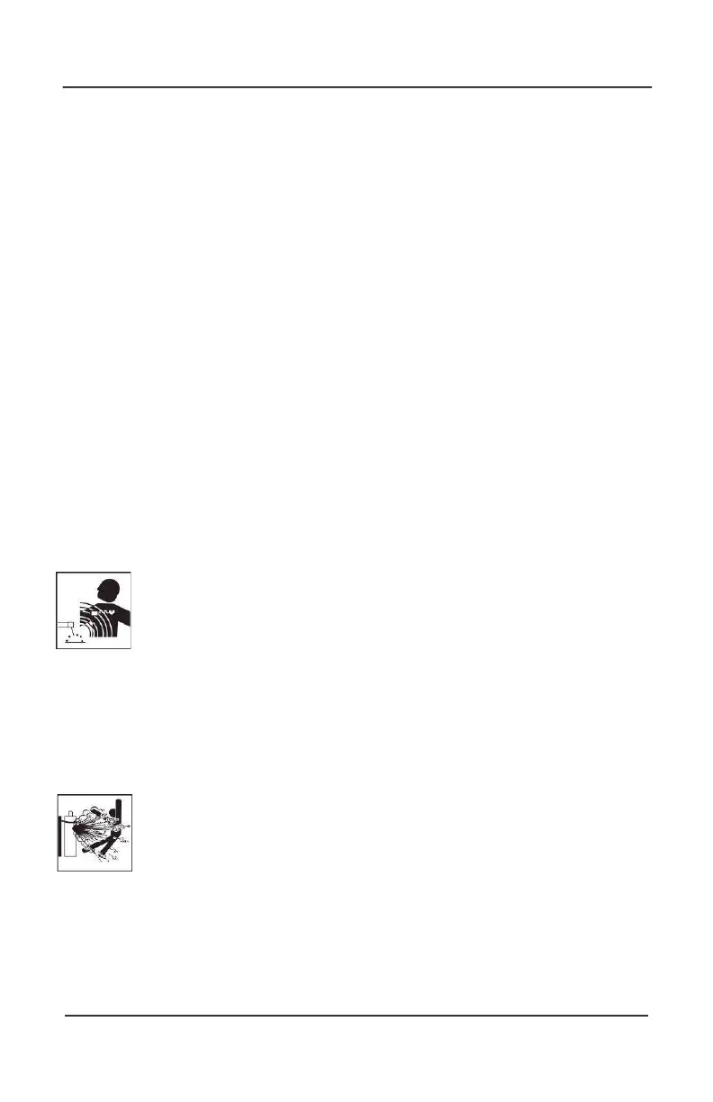 -Do not wind the welding cables or other wires around your body, or hold them