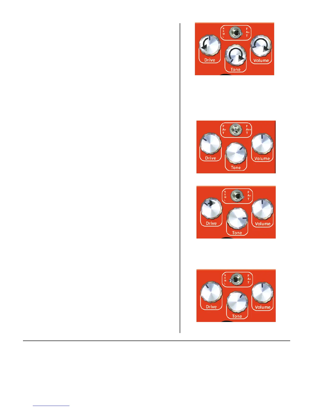 at 10 o'clock to Noon, Tone at 3 O'clock, Fat Switch On. Note: