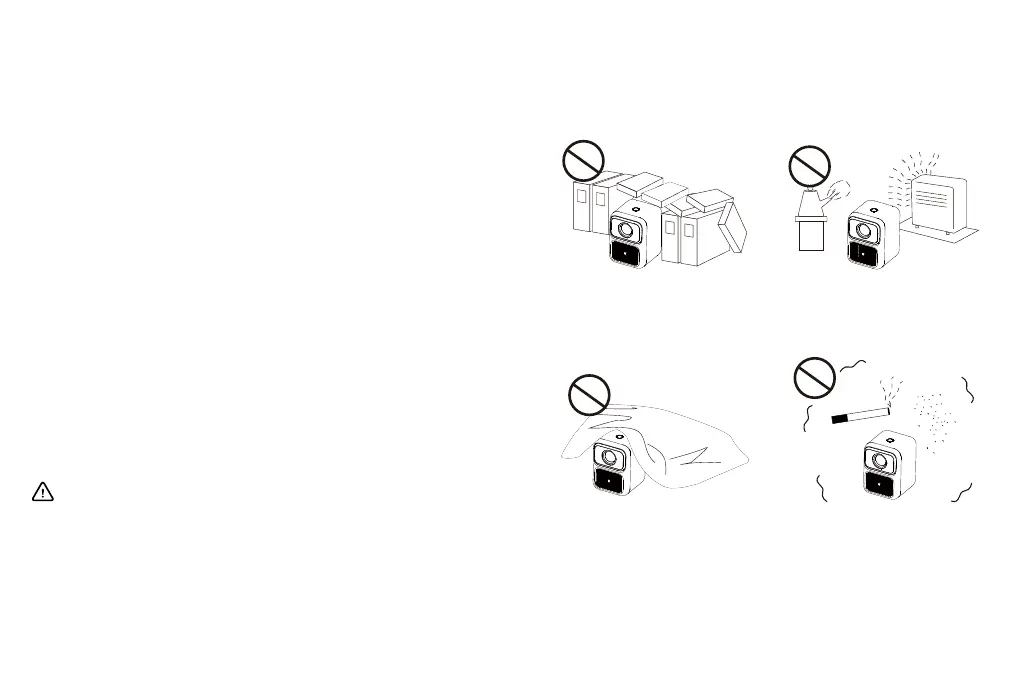 6. Areas near the exhaust will become hot during and after we use the projector, it may