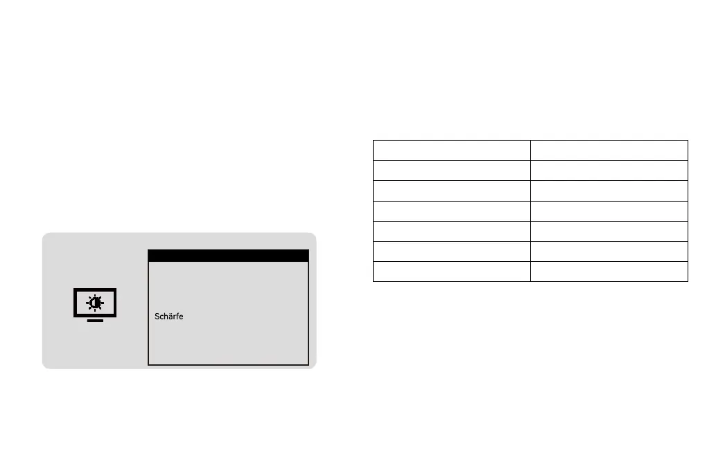 Bild: Bildmodus / Kontrast / Helligkeit / Farbe / Farbton / Schärfe / Fokus /