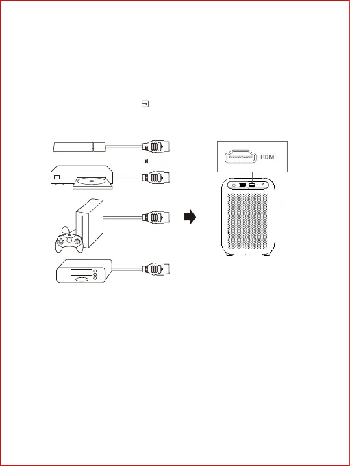 ① Conecte el proyector al dispositivo de reproducción HDMI con el cable HDMI (no suministrado).