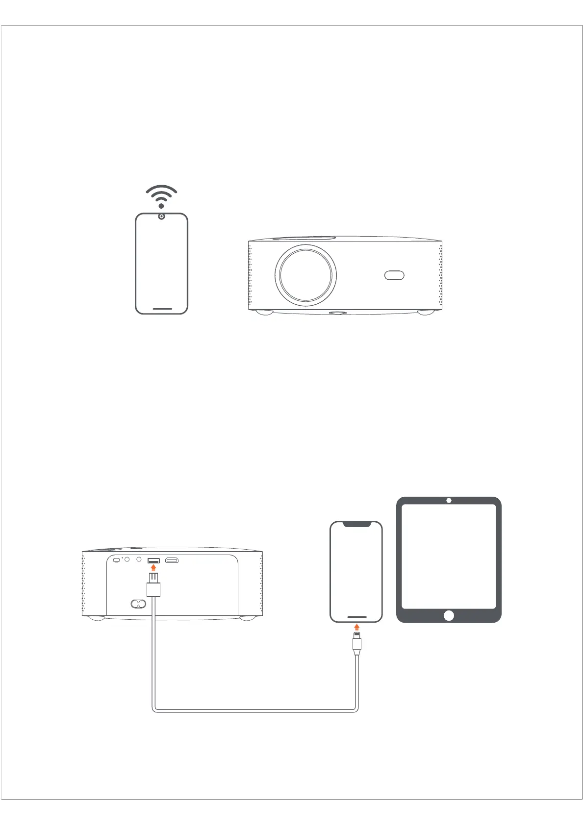 1. Connect iPhone and projector through "USB" port with Phone USB cable.