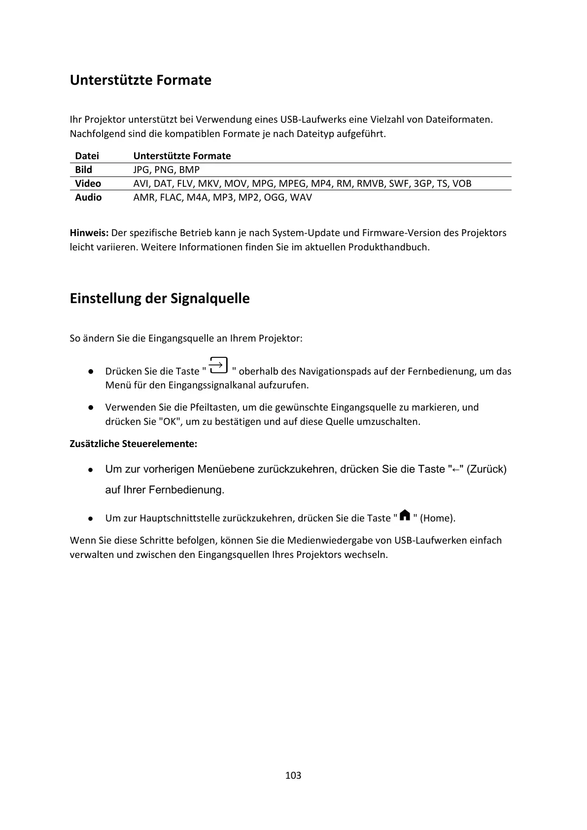 Ihr Projektor unterstützt bei Verwendung eines USB-Laufwerks eine Vielzahl von Dateiformaten.