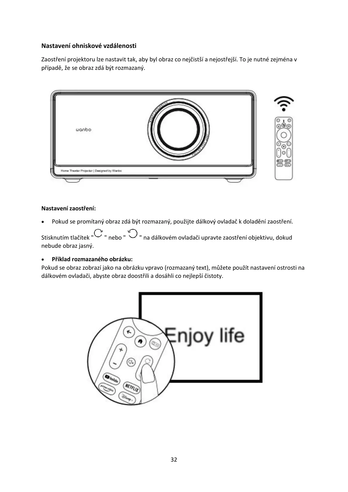 • Pokud se promítaný obraz zdá být rozmazaný, použijte dálkový ovladač k doladění zaostření.