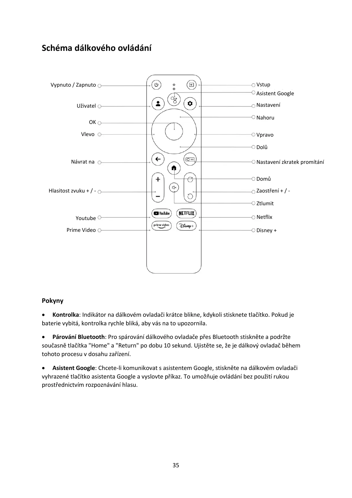 • Asistent Google: Chcete-li komunikovat s asistentem Google, stiskněte na dálkovém ovladači