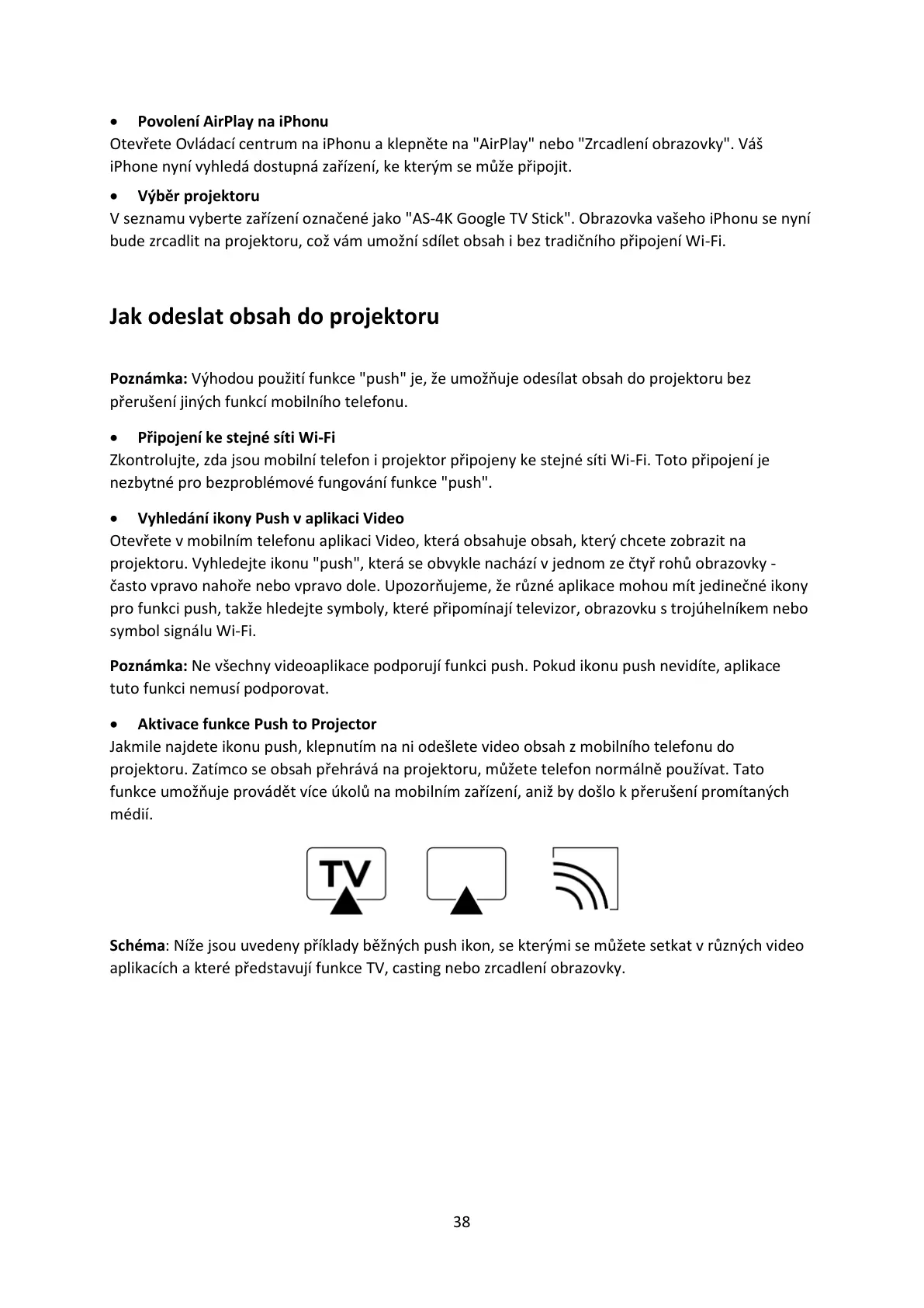 Poznámka: Výhodou použití funkce "push" je, že umožňuje odesílat obsah do projektoru bez