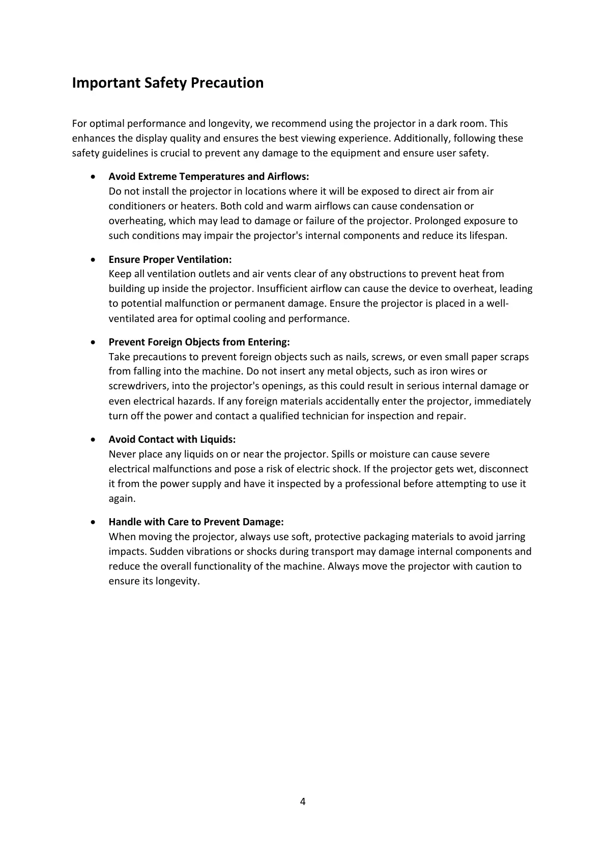 to potential malfunction or permanent damage. Ensure the projector is placed in a well-