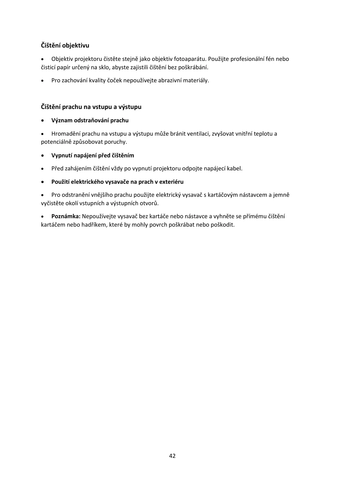 • Objektiv projektoru čistěte stejně jako objektiv fotoaparátu. Použijte profesionální fén nebo