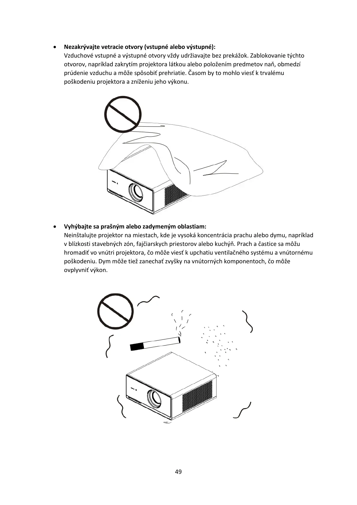 otvorov, napríklad zakrytím projektora látkou alebo položením predmetov naň, obmedzí