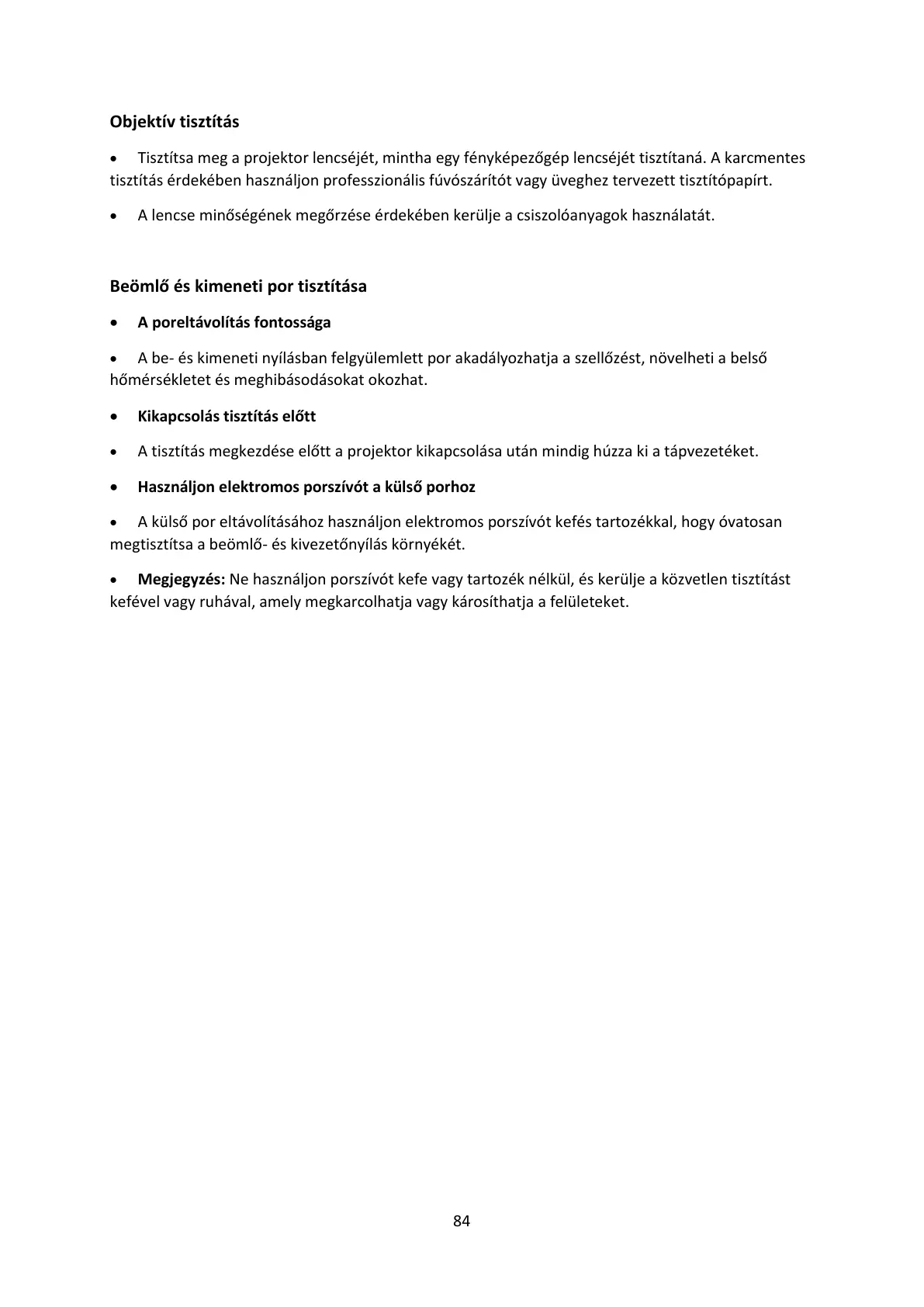 • Tisztítsa meg a projektor lencséjét, mintha egy fényképezőgép lencséjét tisztítaná. A karcmentes