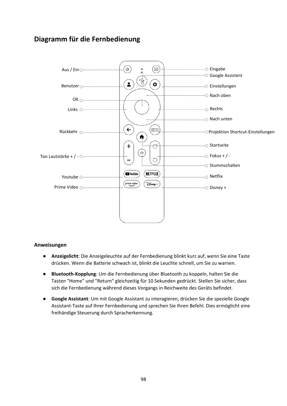 ● Bluetooth-Kopplung: Um die Fernbedienung über Bluetooth zu koppeln, halten Sie die