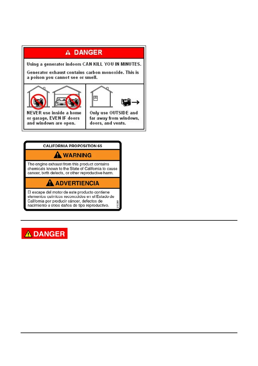 Exhaust gas contains invisible but poisonous carbon monoxide. Never run the generator in an