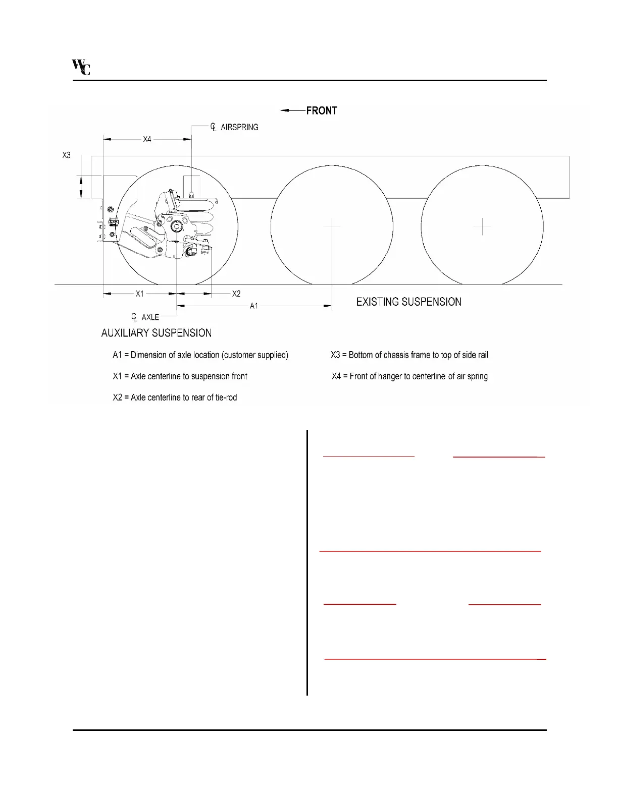 4. Locate the auxiliary axle mounting position.