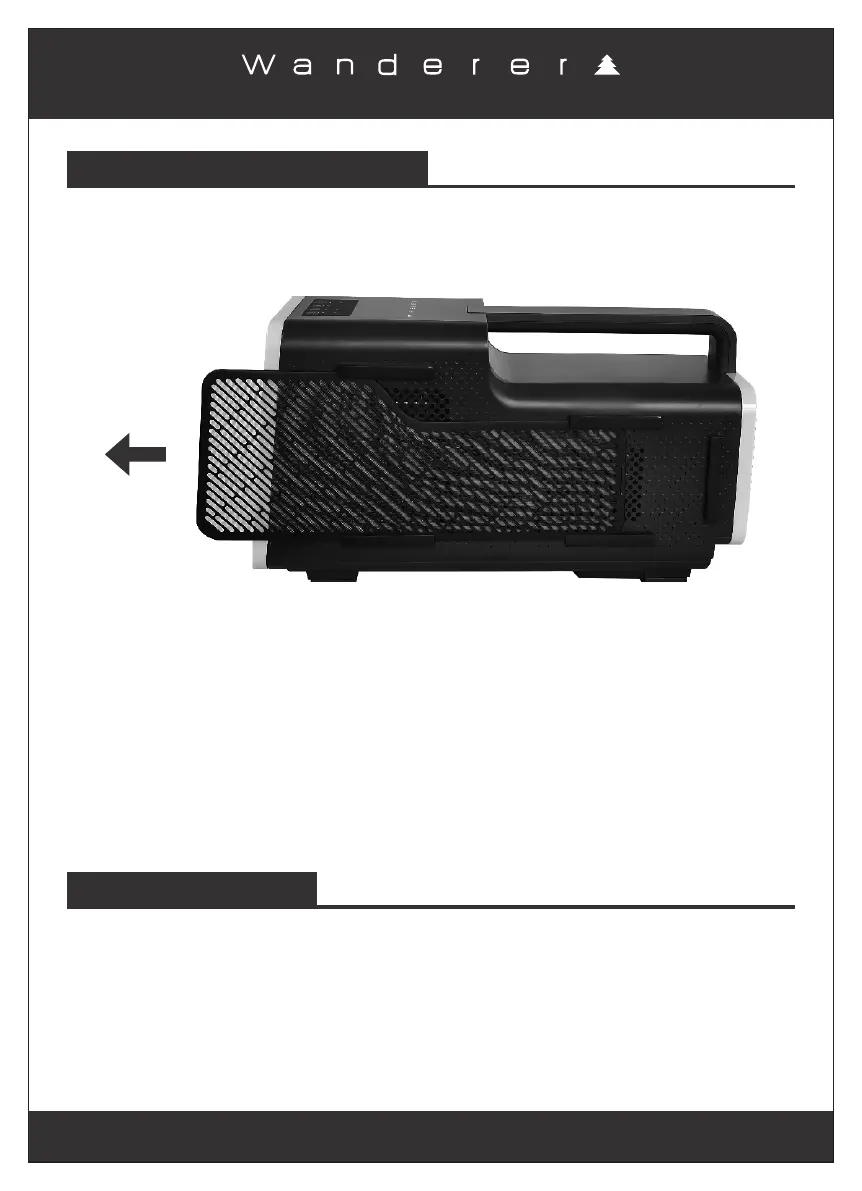 · Remove the air filters by sliding them out from the casing as shown.