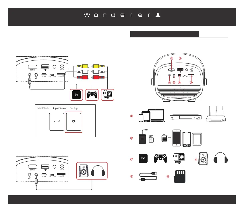 the projector AV input (as per the below example) or connect