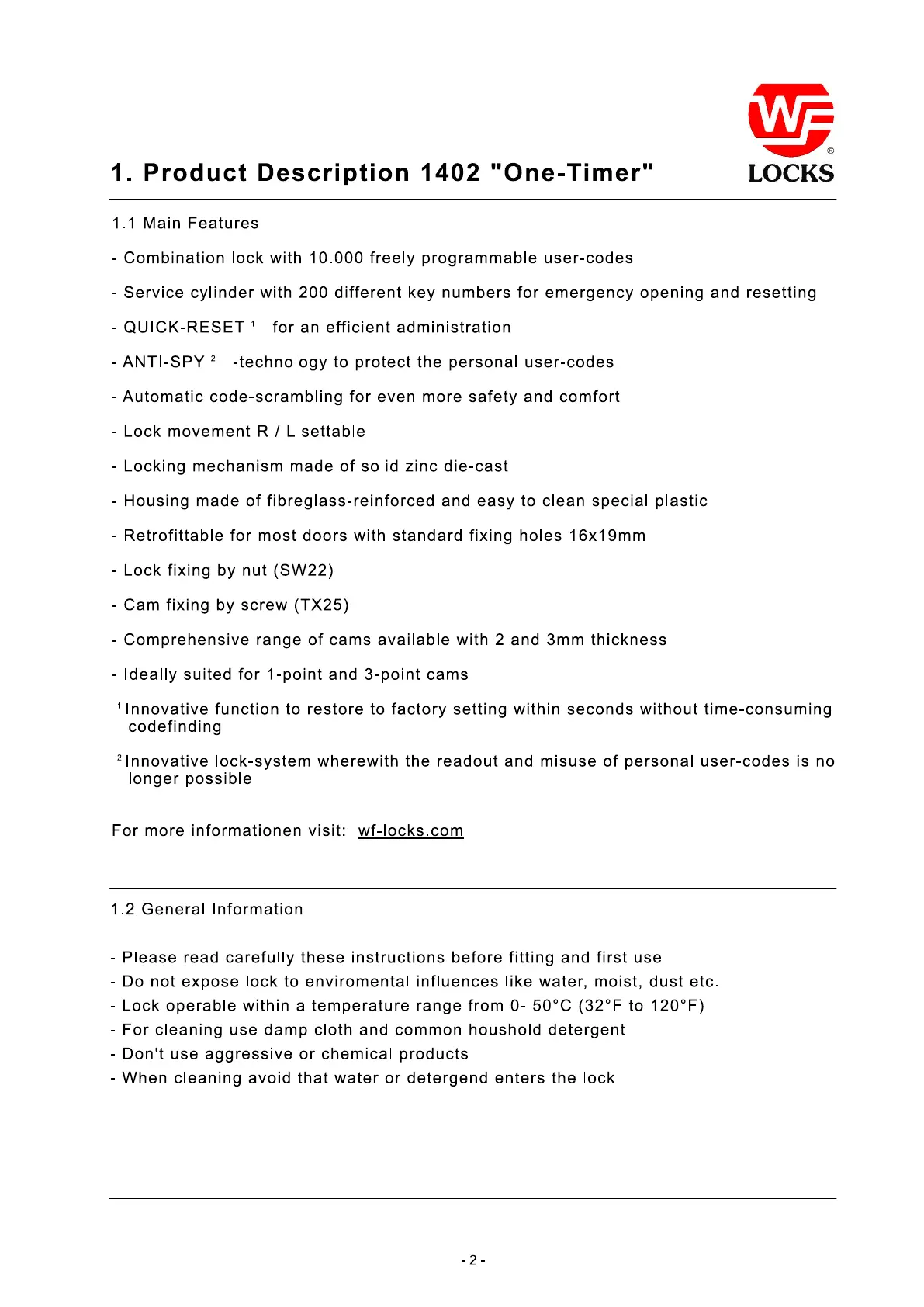 - Do not expose lock to enviromental influences like water, moist, dust etc.