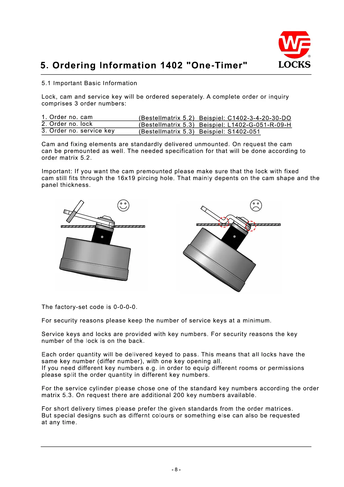 Lock, cam and service key will be ordered seperately. A complete order or inquiry