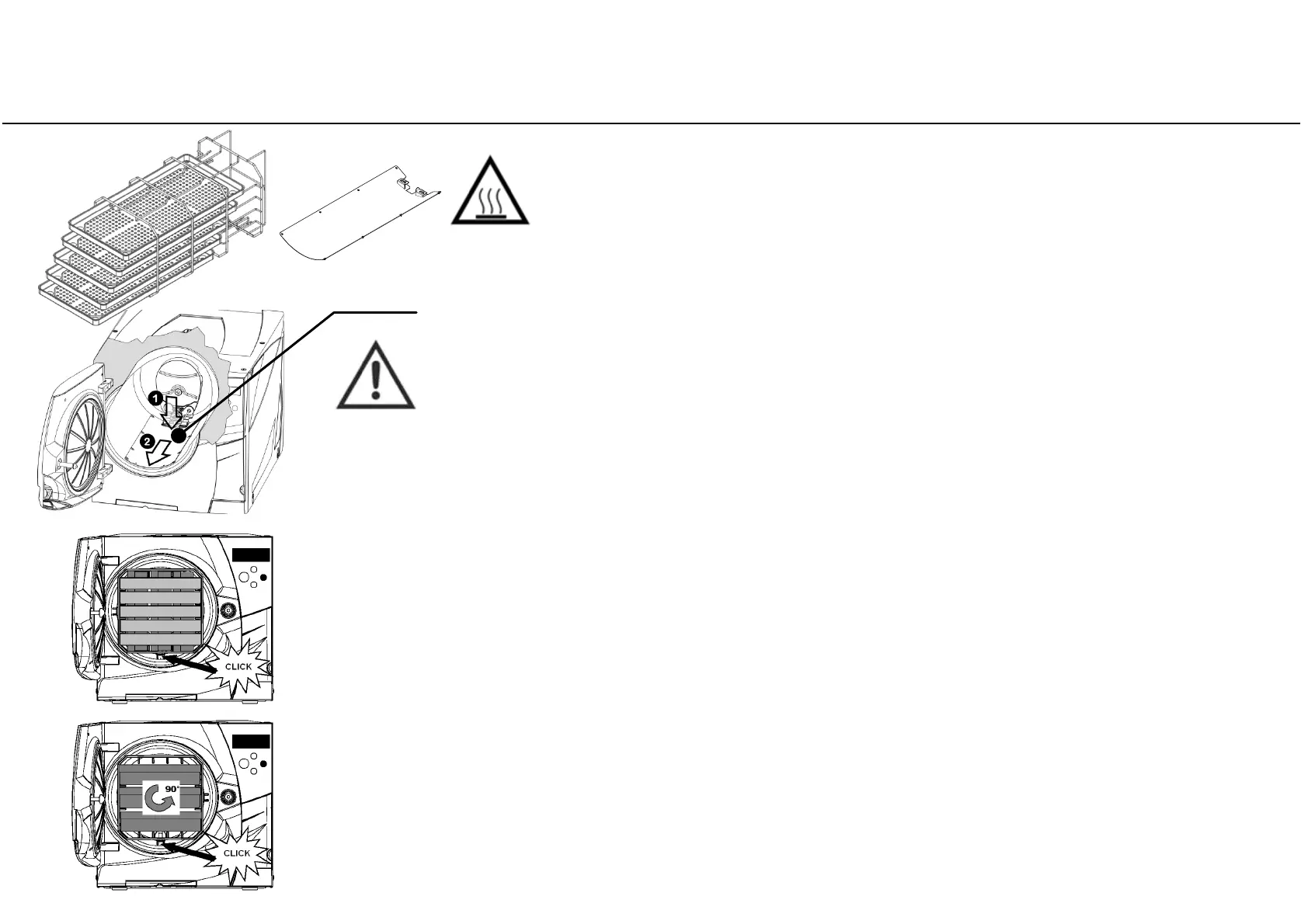 Insert the rack into the sterilizer chamber, align it at the center/bottom of the chamber and push it gently