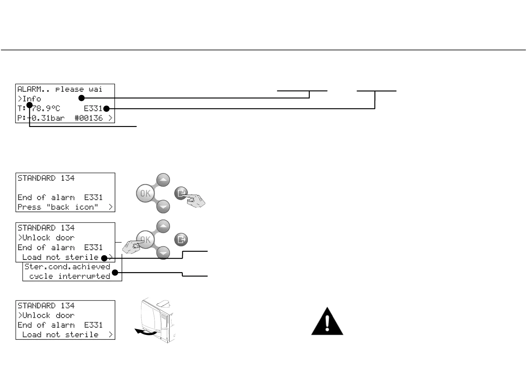 In case certain important sterilization parameters are not met, the sterilizer will generate an alarm code