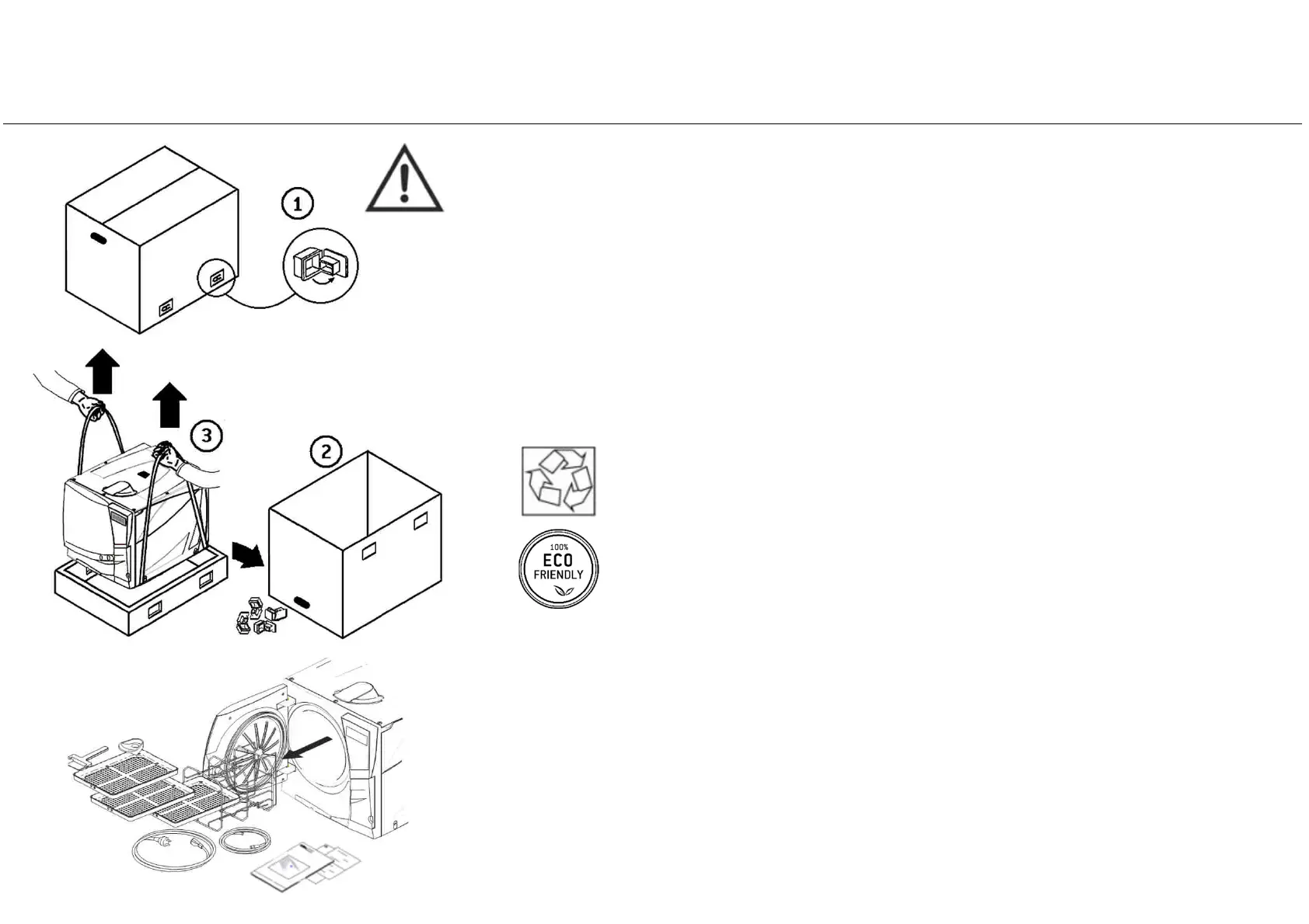 The sterilizer must be removed from the box and transported using the specific straps