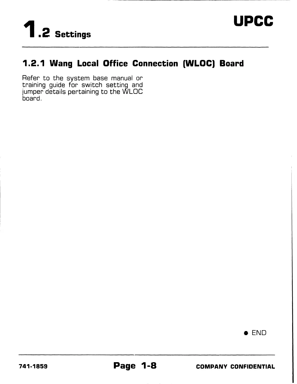 Wang 200 Series - Settings; Wang Local Office Connection (WLOC) Board