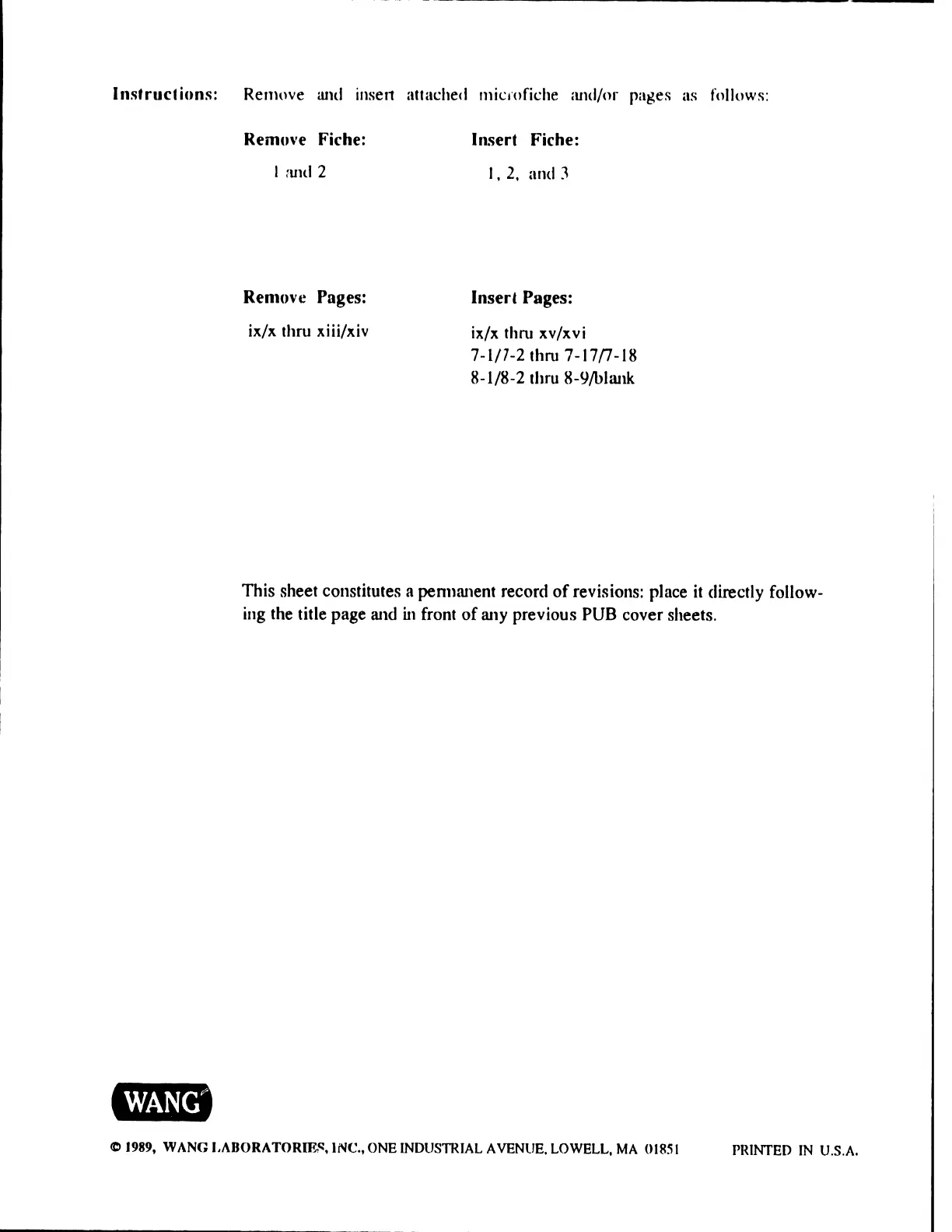 C 1989, WANG J.ABORATORIEq, INC., ONE INDUSTRIAL A VENUE. LOWELL,