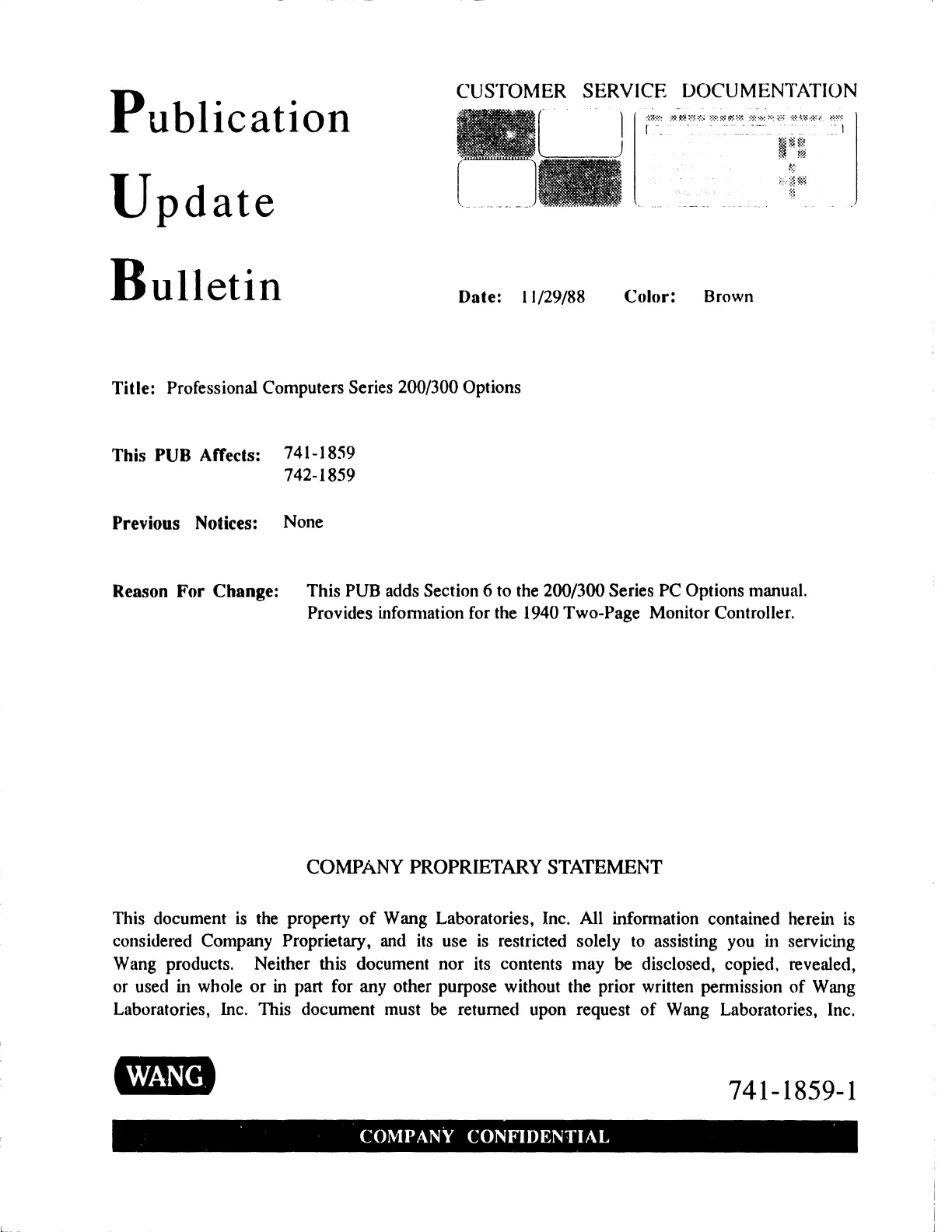This PUB adds Section 6 to the 200/300 Series PC Options manual.