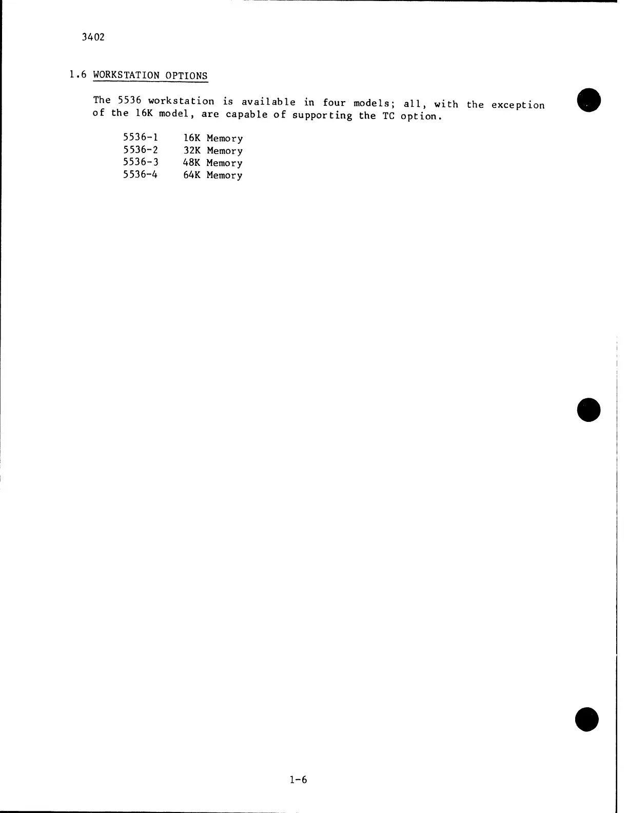 Wang 5536 - Workstation Options