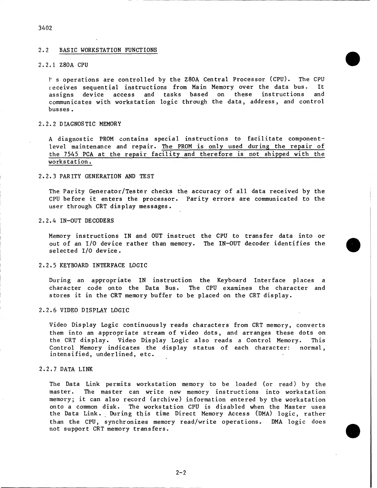 Wang 5536 - Basic Workstation Functions; Z80 A Cpu; Diagnostic Memory; Parity Generation and Test