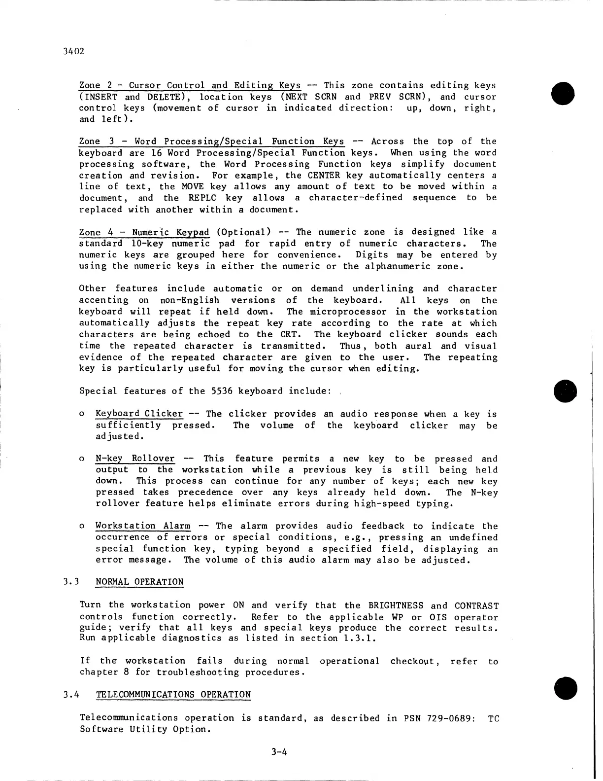 Wang 5536 - Normal Operation; Telecommunications