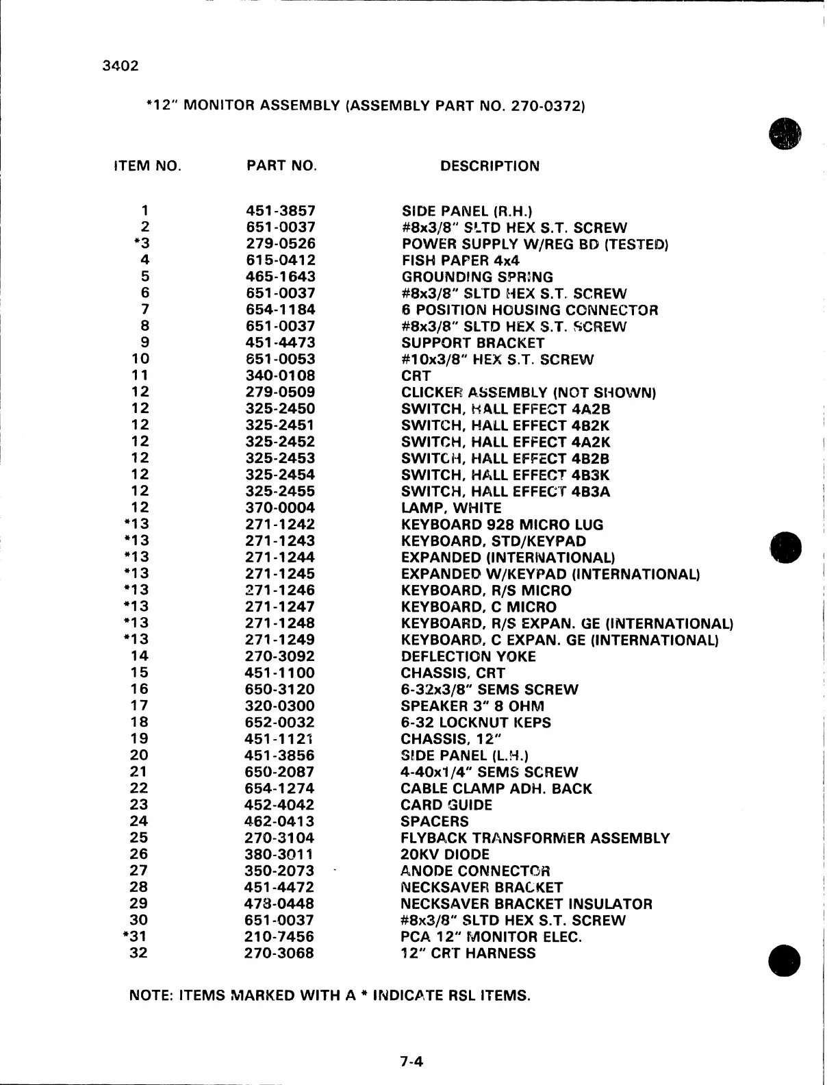 MONITOR ASSEMBLY (ASSEMBLY PART NO.